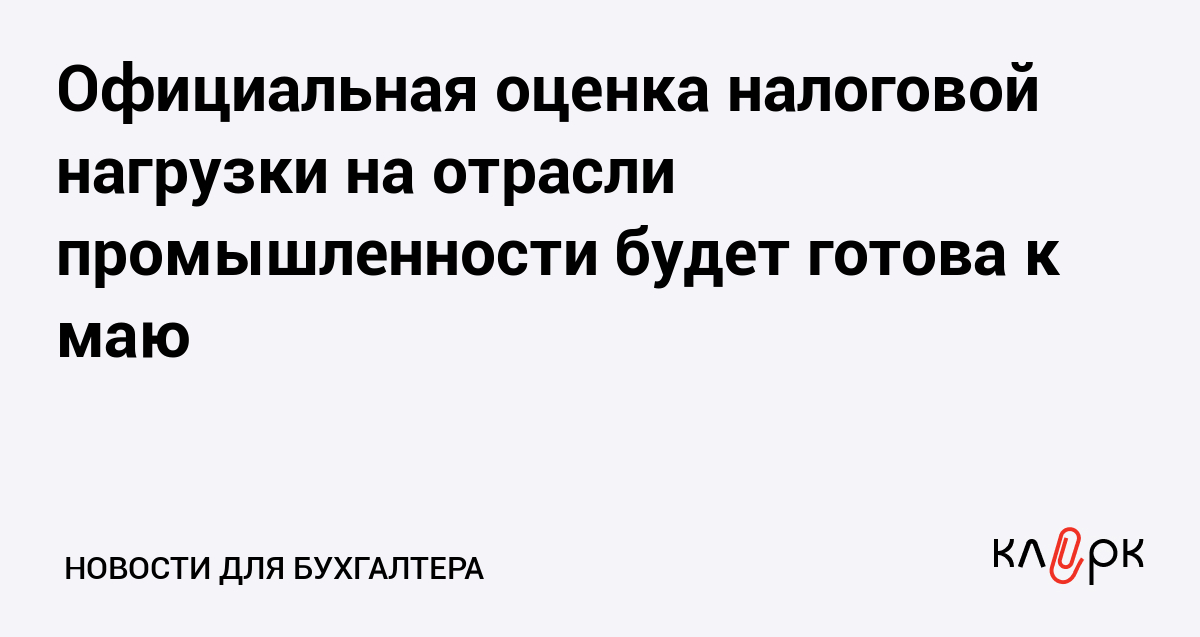 Официальная оценка налоговой нагрузки на отрасли промышленности будет готова к маю