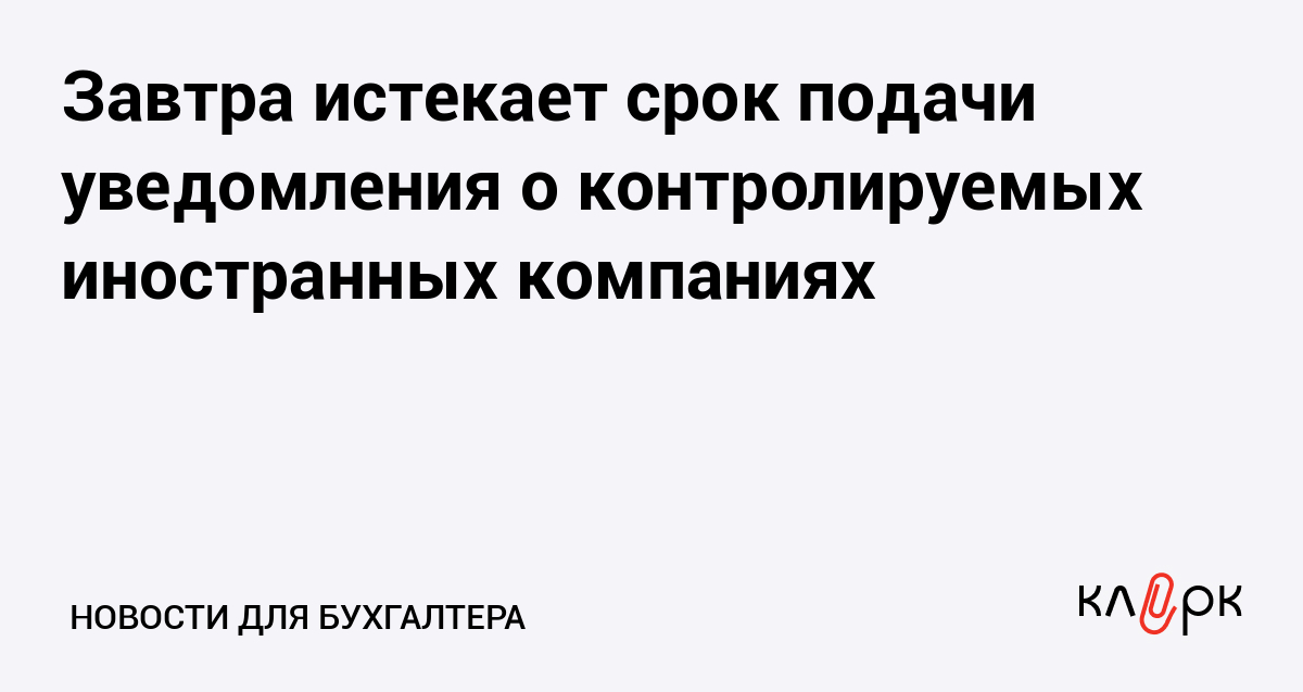 Завтра истекает срок подачи уведомления о контролируемых иностранных компаниях