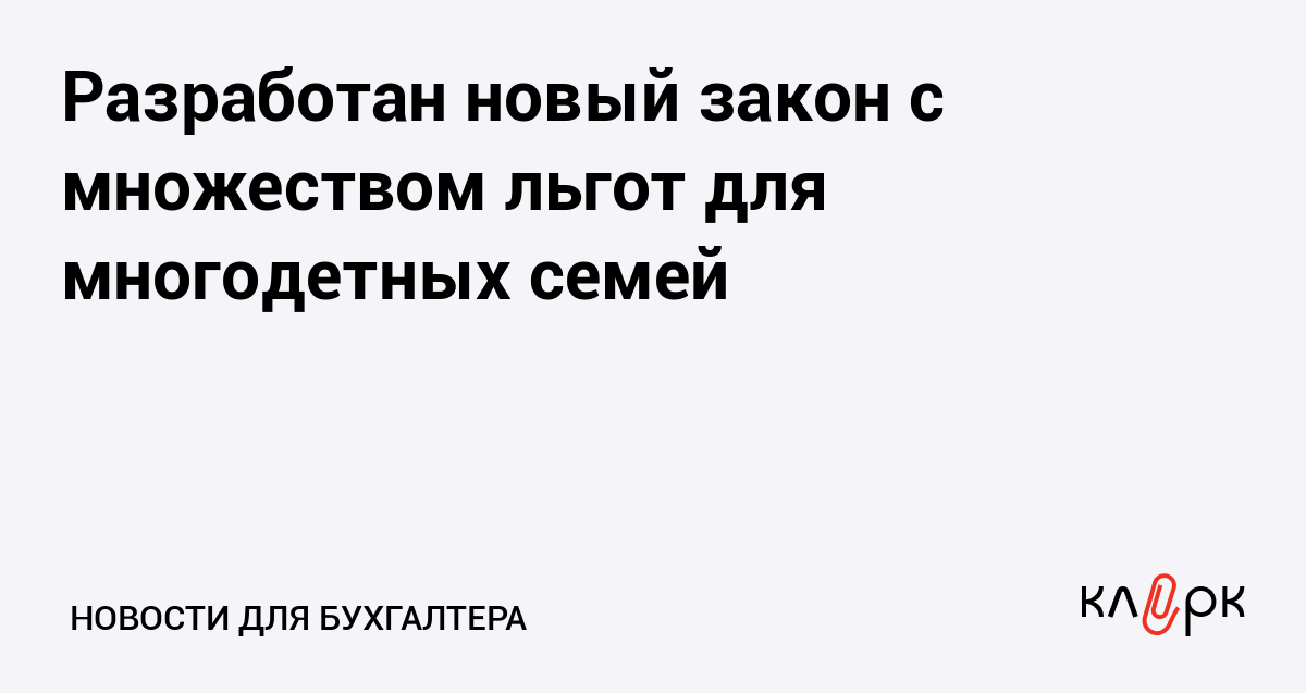 Разработан новый закон с множеством льгот для многодетных семей