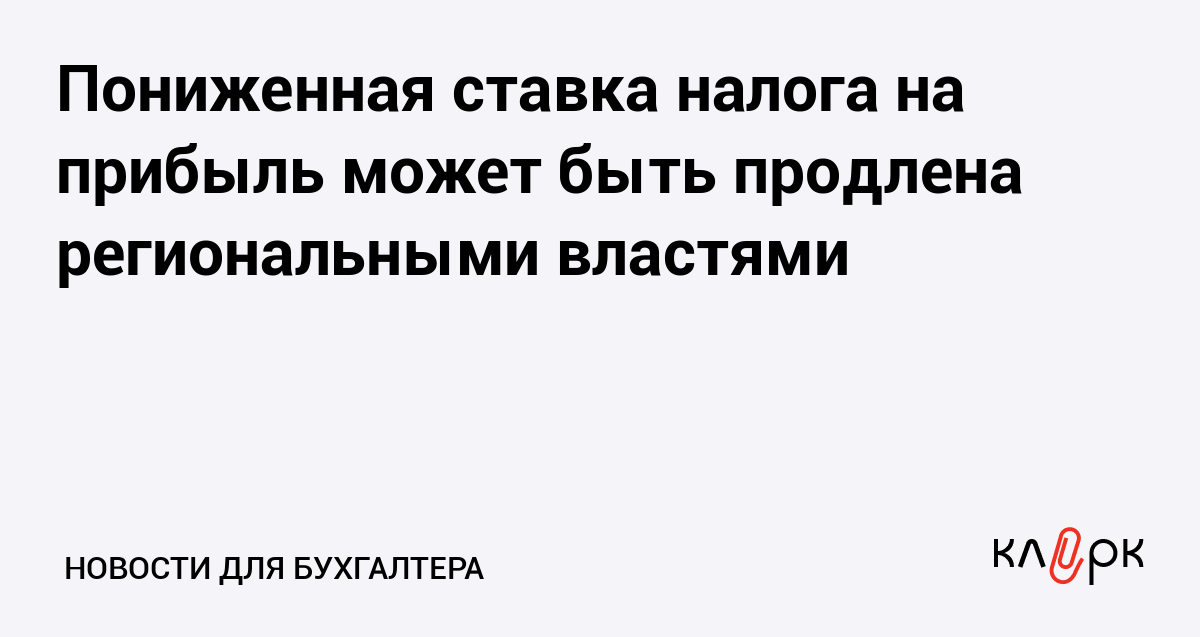 Пониженная ставка налога на прибыль может быть продлена региональными властями