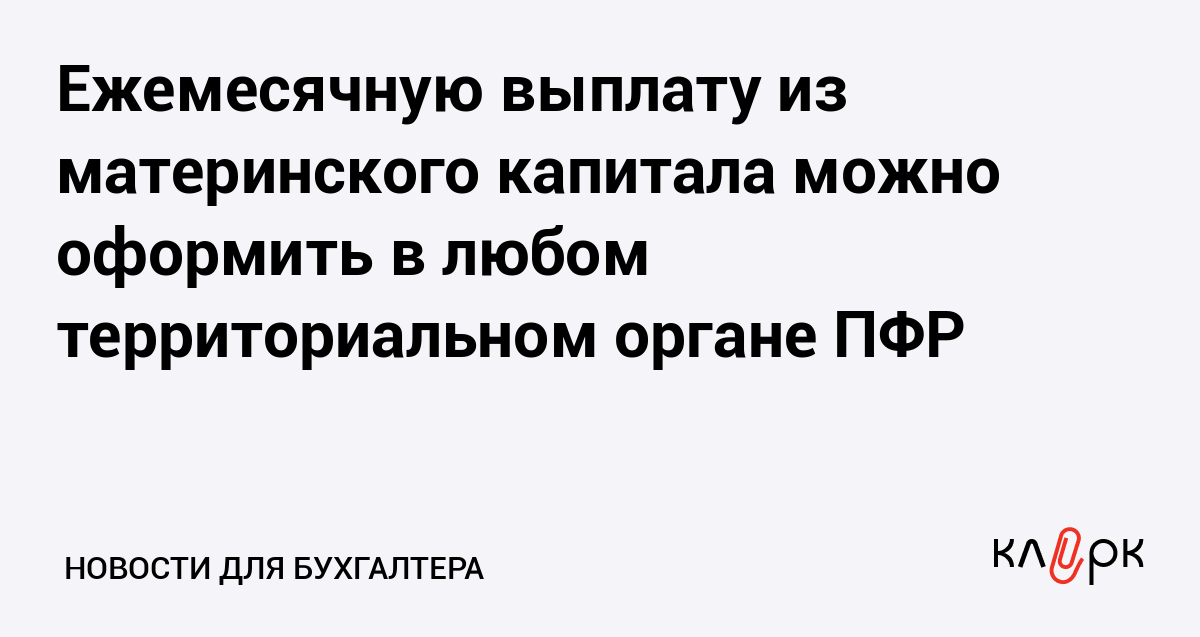 Ежемесячную выплату из материнского капитала можно оформить в любом территориальном органе ПФР
