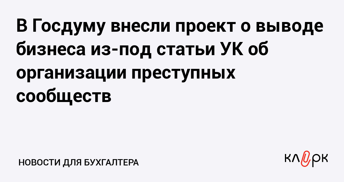 В Госдуму внесли проект о выводе бизнеса из-под статьи УК об организации преступных сообществ