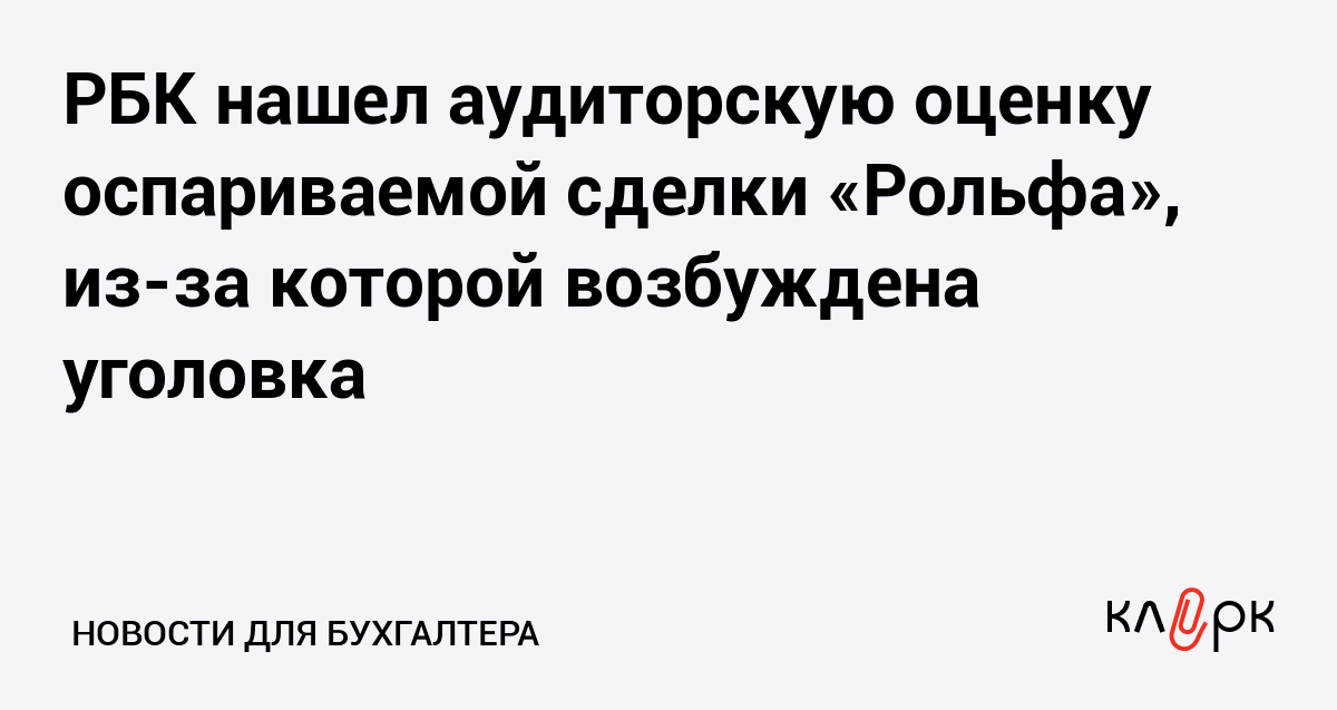 РБК нашел аудиторскую оценку оспариваемой сделки «Рольфа», из-за которой возбуждена уголовка