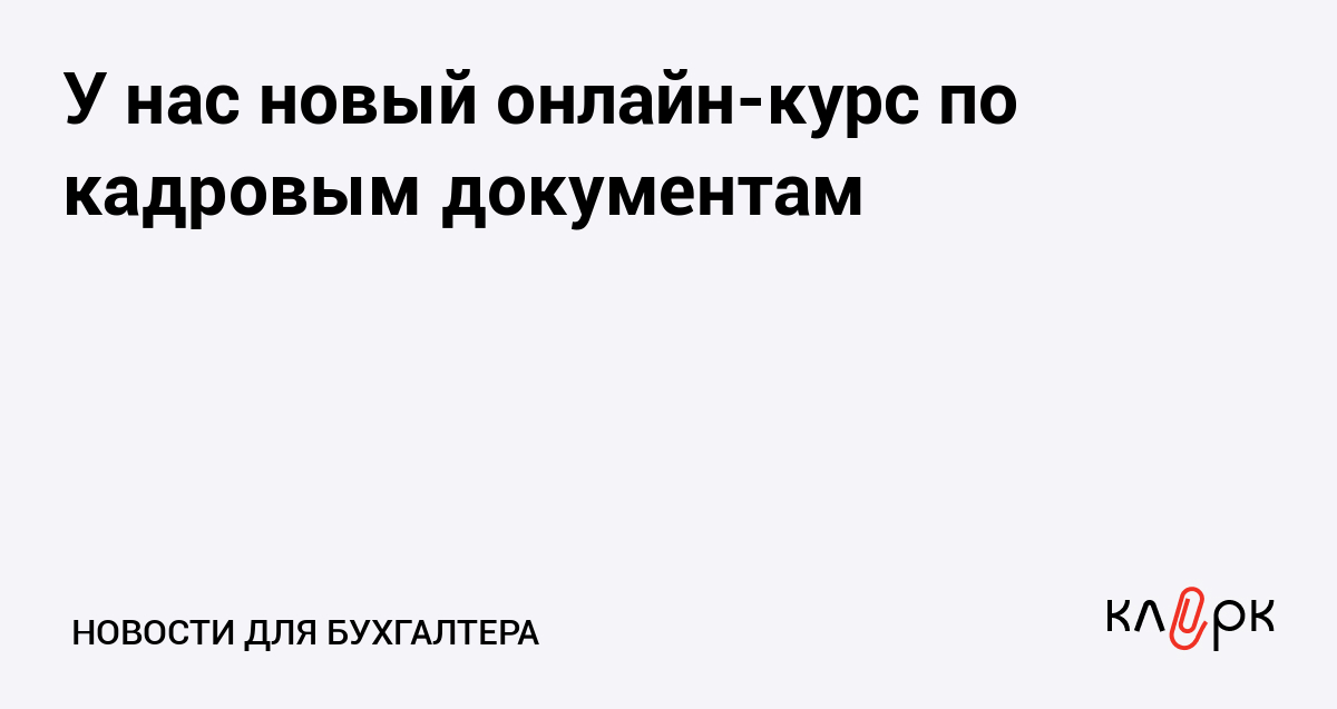 В Центре онлайн-обучения Клерк.ру выходит еще один курс. Узнаете все про кадровый учет и составление кадровых документов без ошибок.