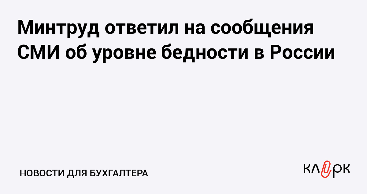 Минтруд ответил на сообщения СМИ об уровне бедности в России