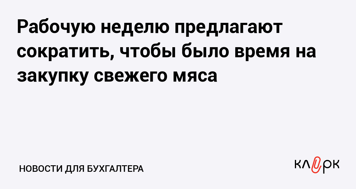 Рабочую неделю предлагают сократить, чтобы было время на закупку свежего мяса