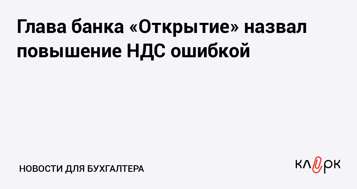Глава банка «Открытие» назвал повышение НДС ошибкой