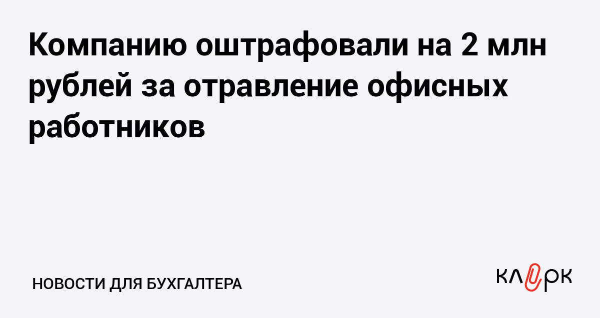Компанию оштрафовали на 2 млн рублей за отравление офисных работников