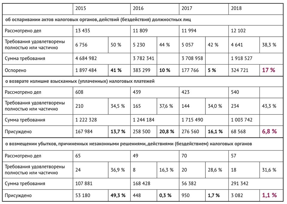 3По-моему, у кого-то проблема с чтением табличек. Например, по делам об оспаривании актов ФНС полностью или частично проиграла 38,3% дел. А циферка 17% в табличке означает процент средней оспоренной суммы от средней суммы требования.