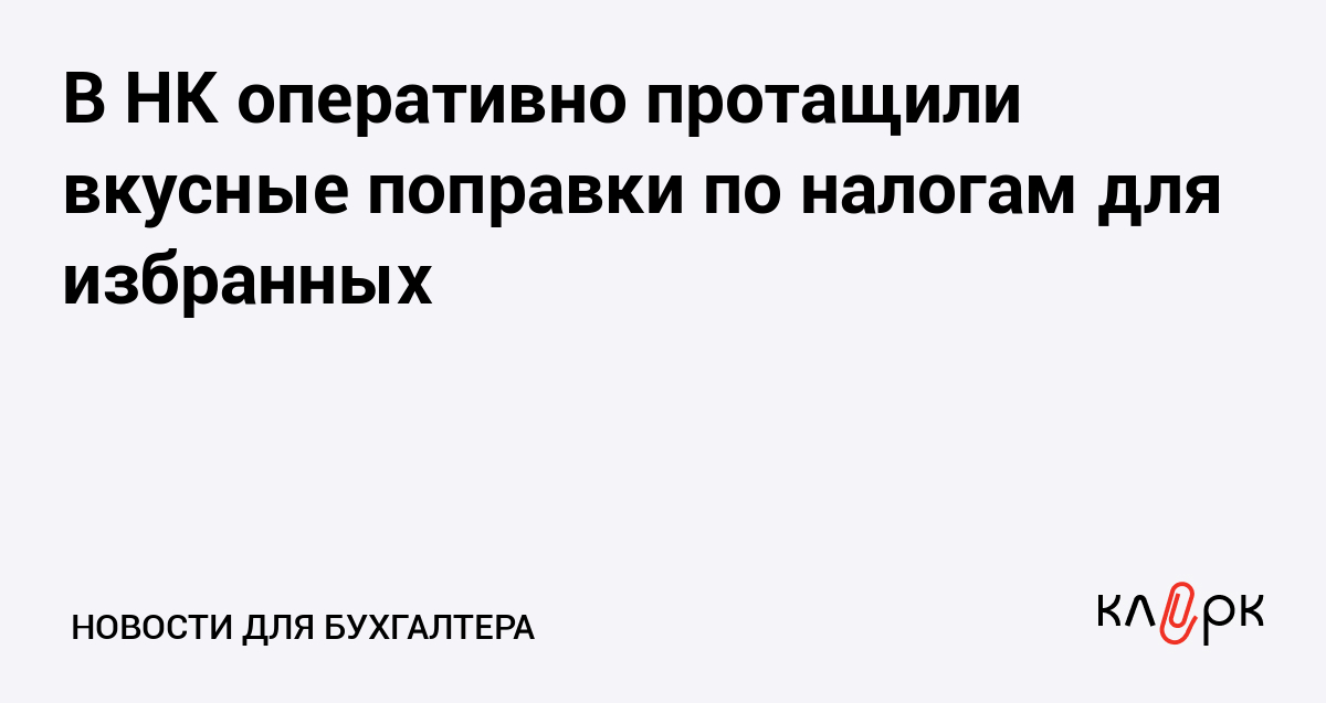 В НК оперативно протащили вкусные поправки по налогам для избранных