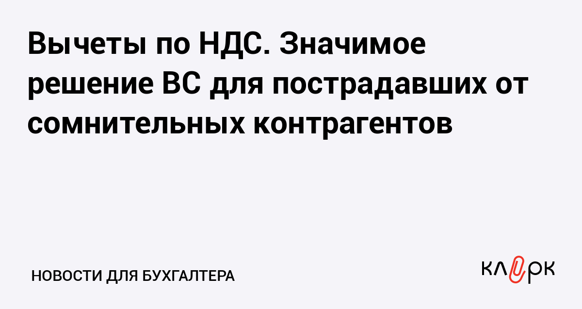 Вычеты по НДС. Значимое решение ВС для пострадавших от сомнительных контрагентов