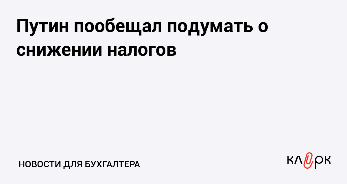 Президент России Владимир Путин сказал, что подумает над предложением лидера ЛДПР Владимира Жириновского снизить налоги, пишут РИА Новости.