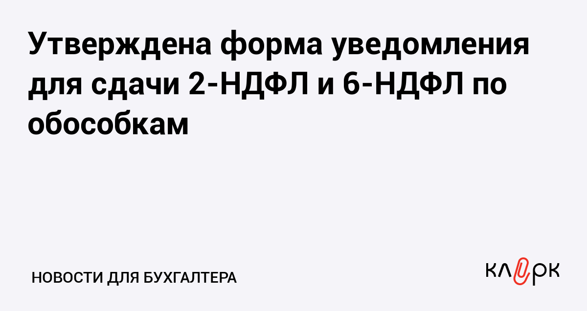 Утверждена форма уведомления для сдачи 2-НДФЛ и 6-НДФЛ по обособкам