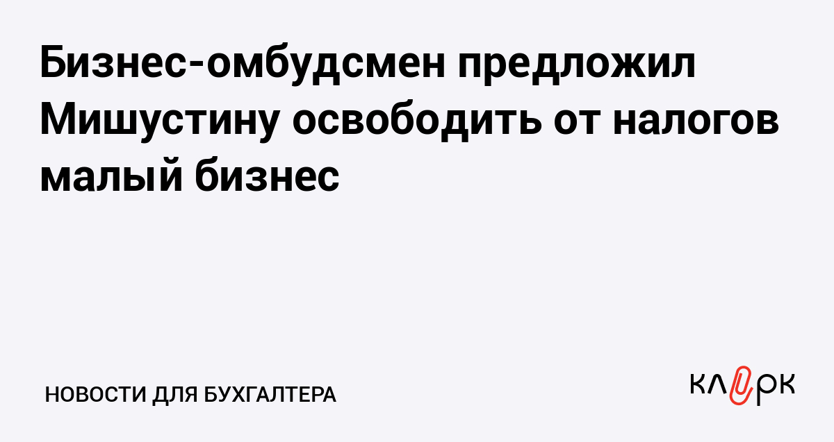 Бизнес-омбудсмен предложил Мишустину освободить от налогов малый бизнес