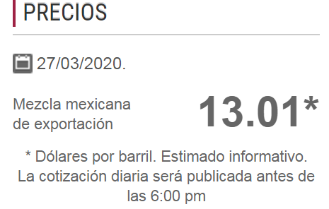 Техасская нефть $7, канадская - $3.82, мексиканская - ... ха-ха (3 раза), впрочем, это не важно - ее все равно никто не берет, даже если она по отрицательной цене пойдет ...