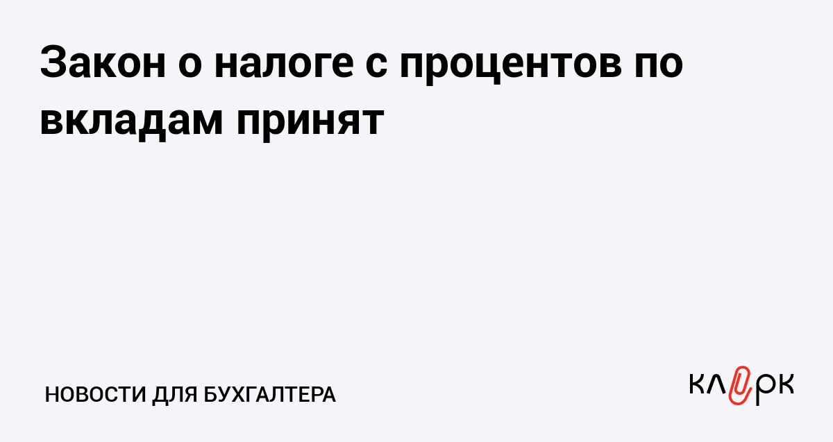 Закон с поправками в Налоговый кодекс о налоге с процентов по вкладам населения уже принят. Он сегодня прошел сразу два чтения в Госдуме и будет рассмотрен сегодня же в Совете Федерации. Кроме поправок по НДФЛ в законе еще много новшеств, которые вносятся для исполнения поручений Путина.