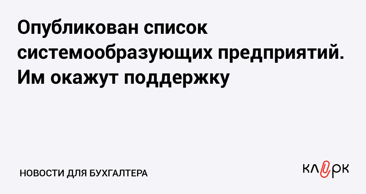 Опубликован список системообразующих предприятий. Им окажут поддержку