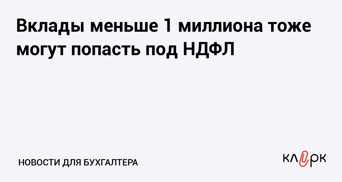 Вклады меньше 1 миллиона тоже могут попасть под НДФЛ