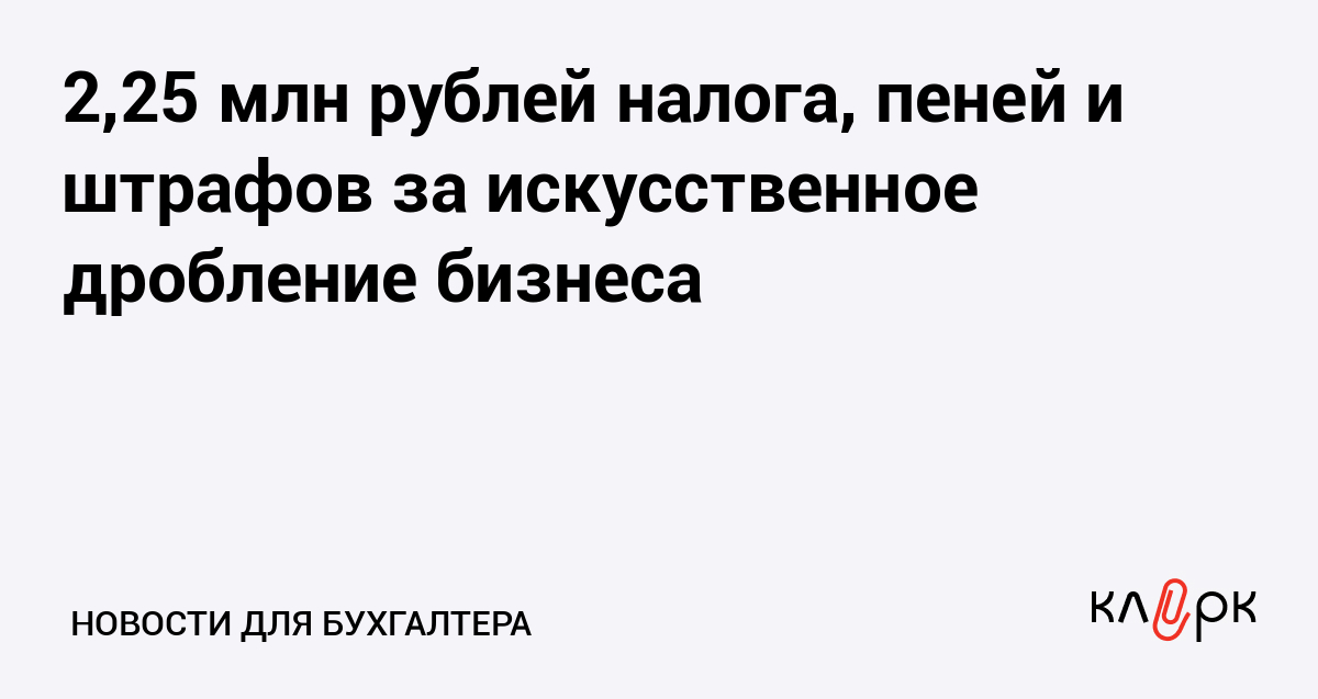 2,25 млн рублей налога, пеней и штрафов за искусственное дробление бизнеса