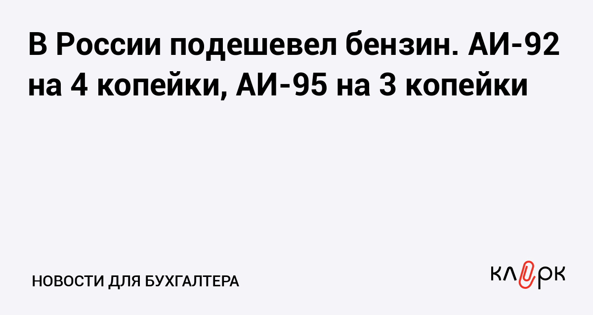 В России подешевел бензин. АИ-92 на 4 копейки, АИ-95 на 3 копейки