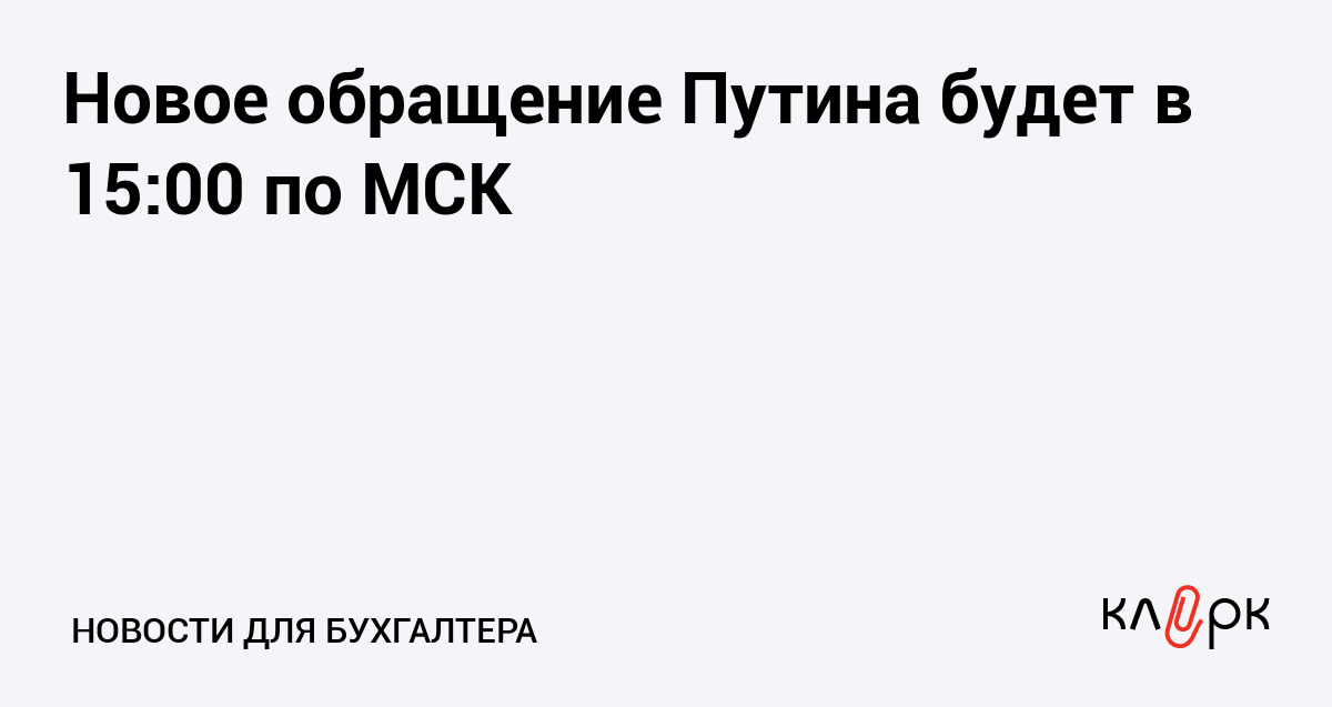 Новое обращение Путина будет в 15:00 по МСК
