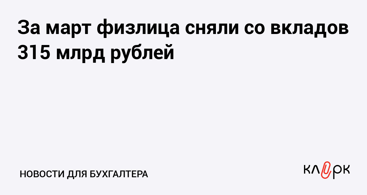 В марте вклады физлиц в российских банках сократились на 315 млрд рублей (или на 1% без учета валютной переоценки).