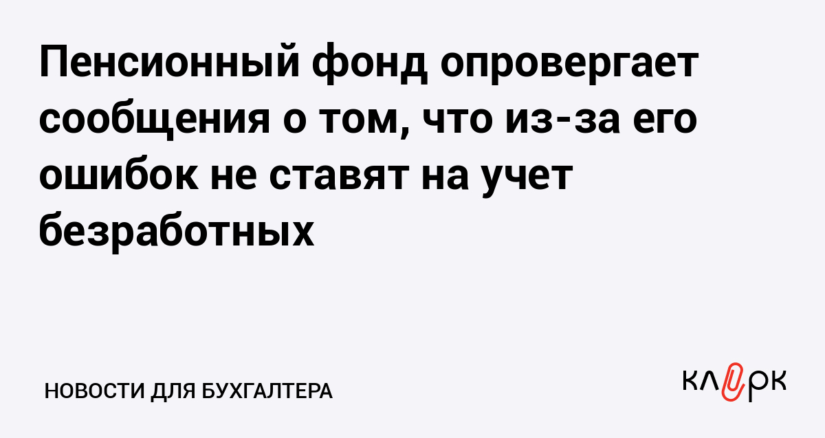 Пенсионный фонд опровергает сообщения о том, что из-за его ошибок не ставят на учет безработных