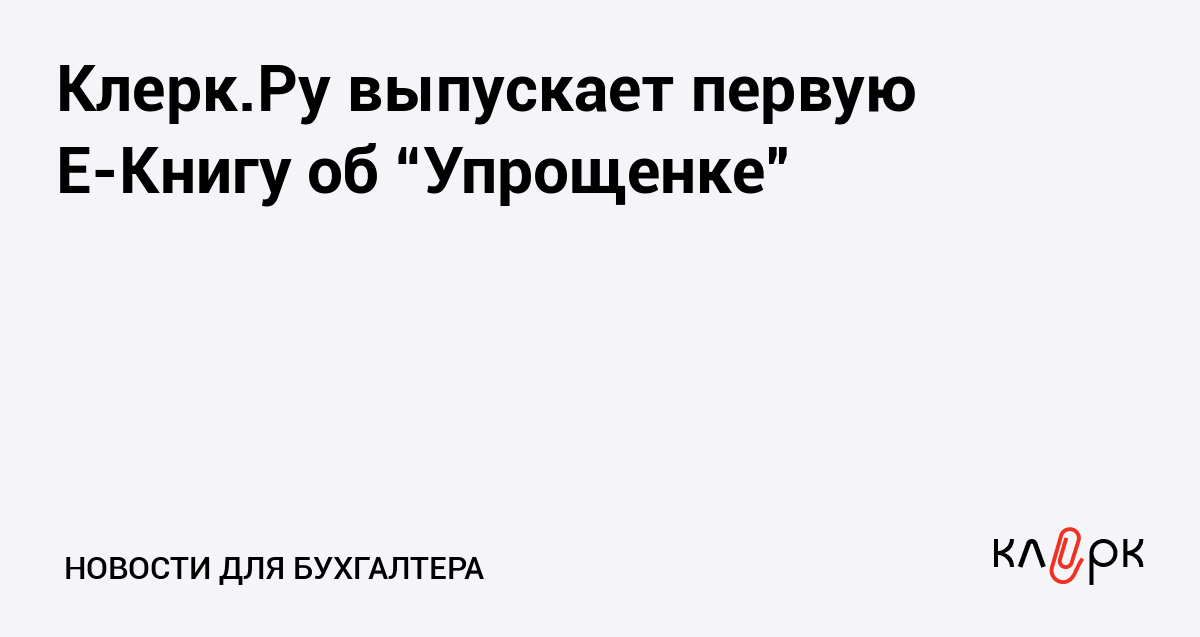 Клерк.Ру выпускает первую E-Книгу об “Упрощенке”
