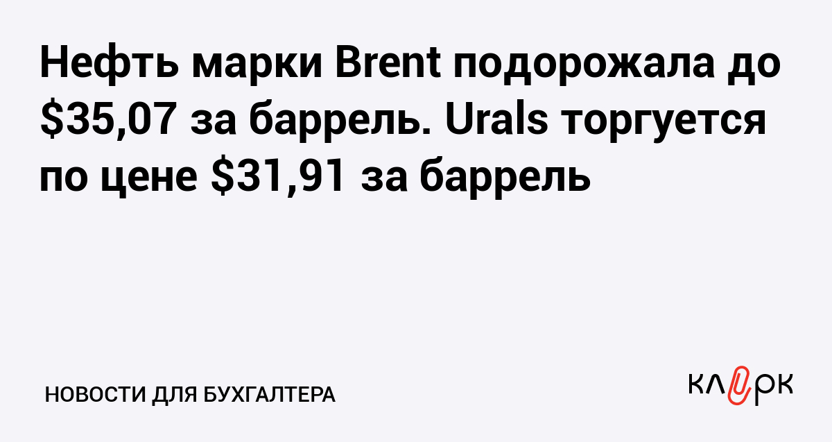 Нефть марки Brent подорожала до $35,07 за баррель. Urals торгуется по цене $31,91 за баррель