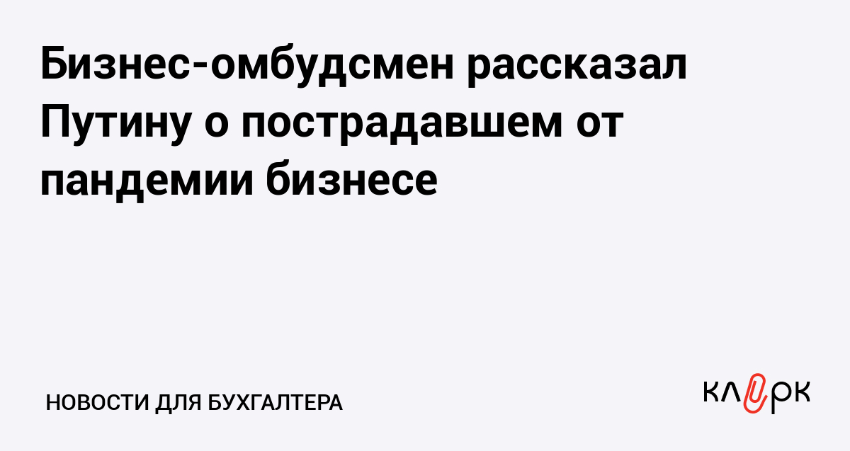 Бизнес-омбудсмен рассказал Путину о пострадавшем от пандемии бизнесе