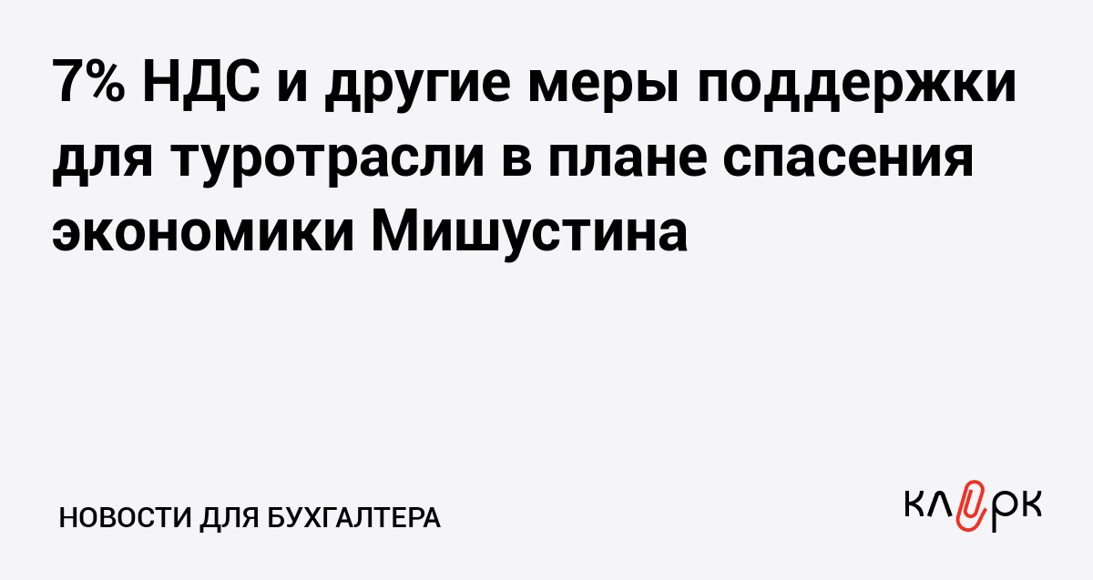 7% НДС и другие меры поддержки для туротрасли в плане спасения экономики Мишустина