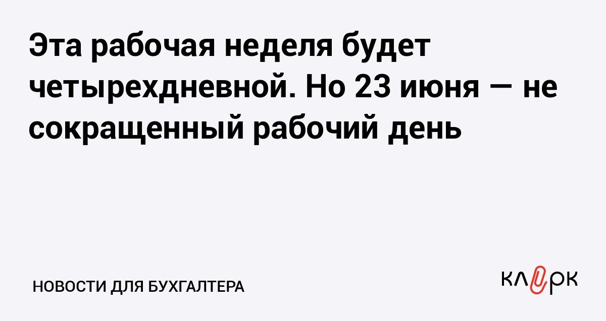 Эта рабочая неделя будет четырехдневной. Но 23 июня — не сокращенный рабочий день