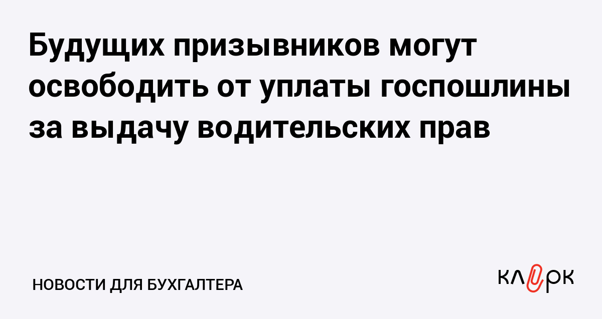 В Госдуму внесен законопроект № 986175-7, которым предлагается освободить граждан, подлежащих призыву на военную службу, от уплаты госпошлины за выдачу им национального водительского удостоверения.