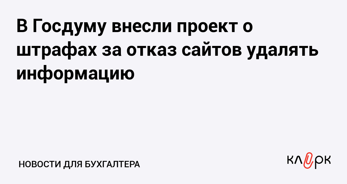 В Госдуму внесли проект о штрафах за отказ сайтов удалять информацию