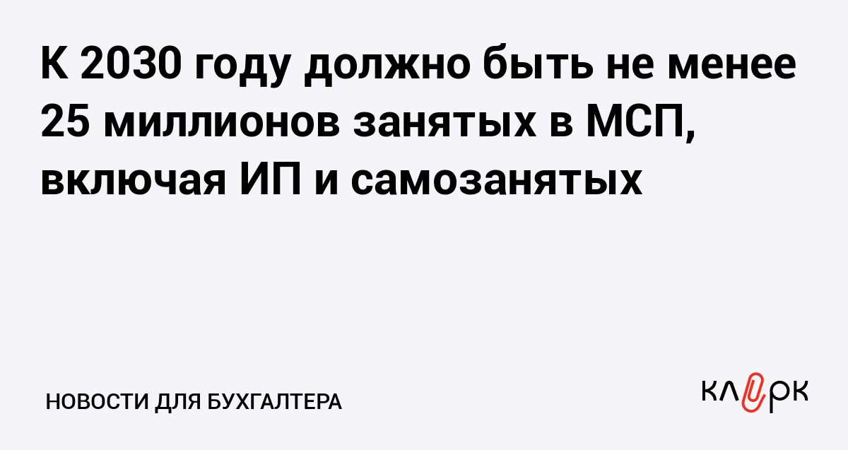 К 2030 году должно быть не менее 25 миллионов занятых в МСП, включая ИП и самозанятых