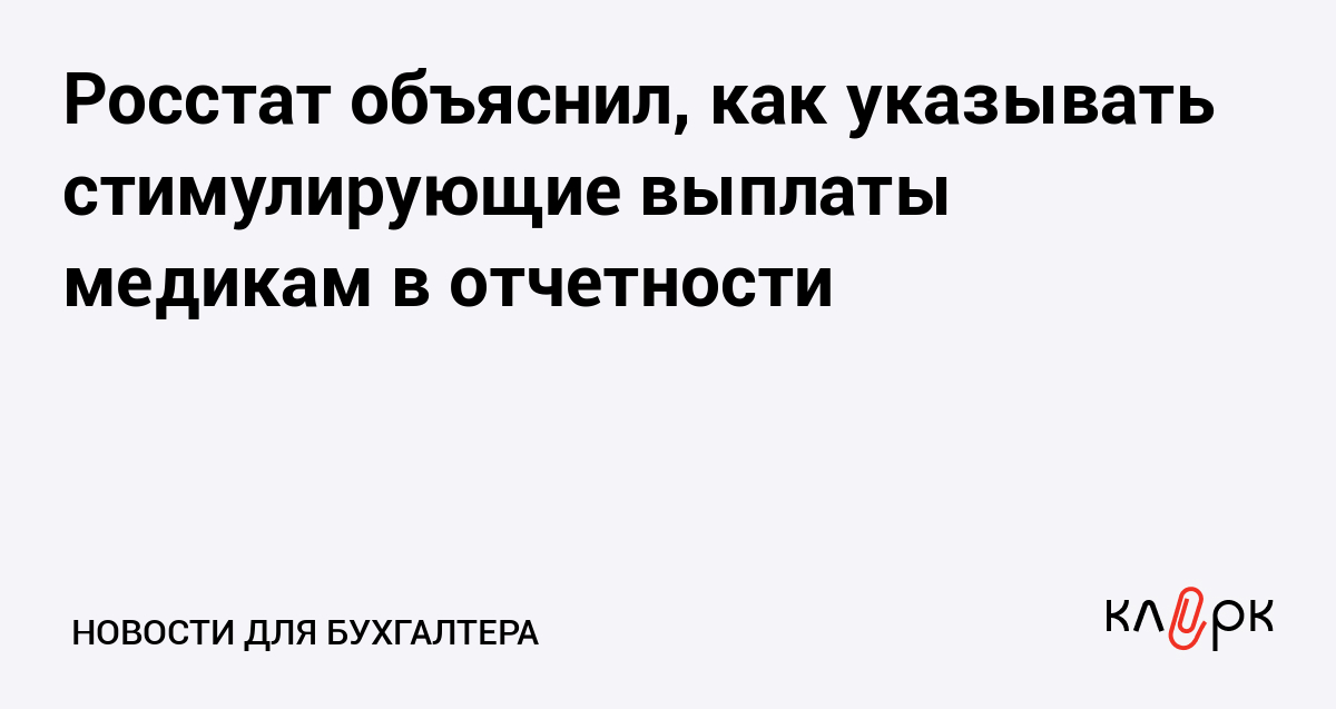 Росстат объяснил, как указывать стимулирующие выплаты медикам в отчетности