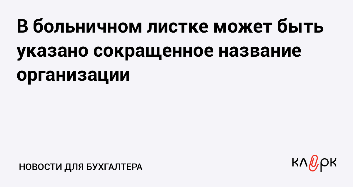 В больничном листке может быть указано сокращенное название организации