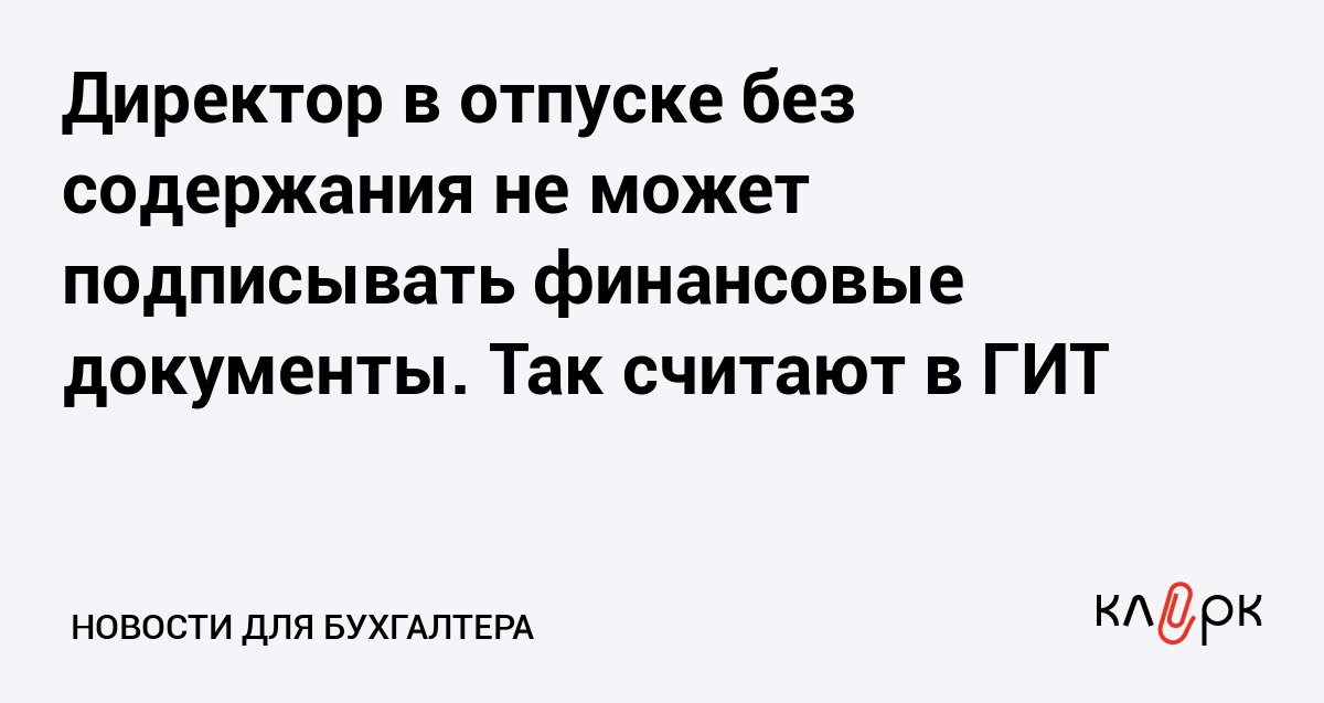 Директор в отпуске без содержания не может подписывать финансовые документы. Так считают в ГИТ