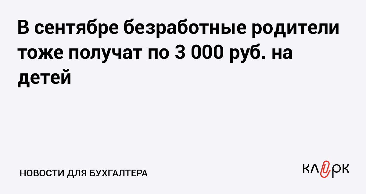 В сентябре безработные родители тоже получат по 3 000 руб. на детей