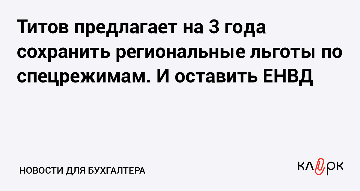 Титов предлагает на 3 года сохранить региональные льготы по спецрежимам. И оставить ЕНВД