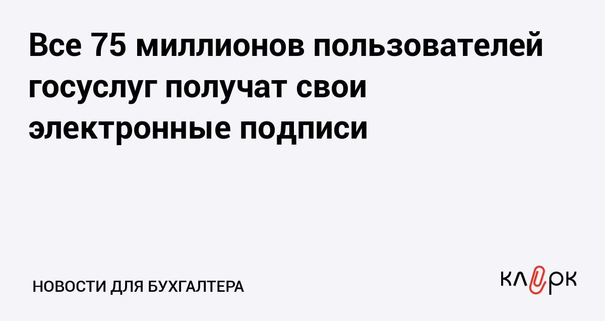 Все 75 миллионов пользователей госуслуг получат свои электронные подписи