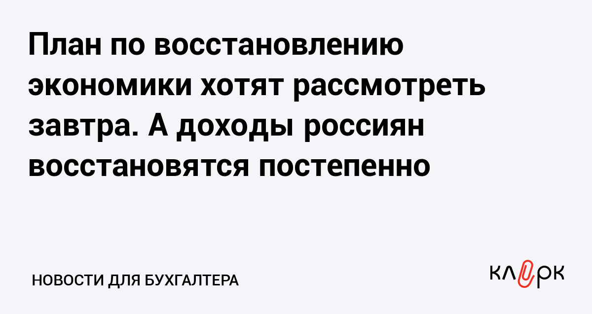 План по восстановлению экономики хотят рассмотреть завтра. А доходы россиян восстановятся постепенно