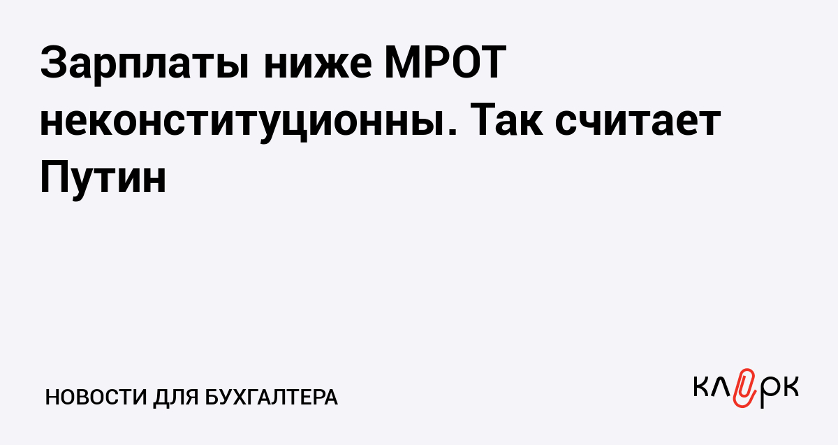 Зарплаты ниже МРОТ неконституционны. Так считает Путин