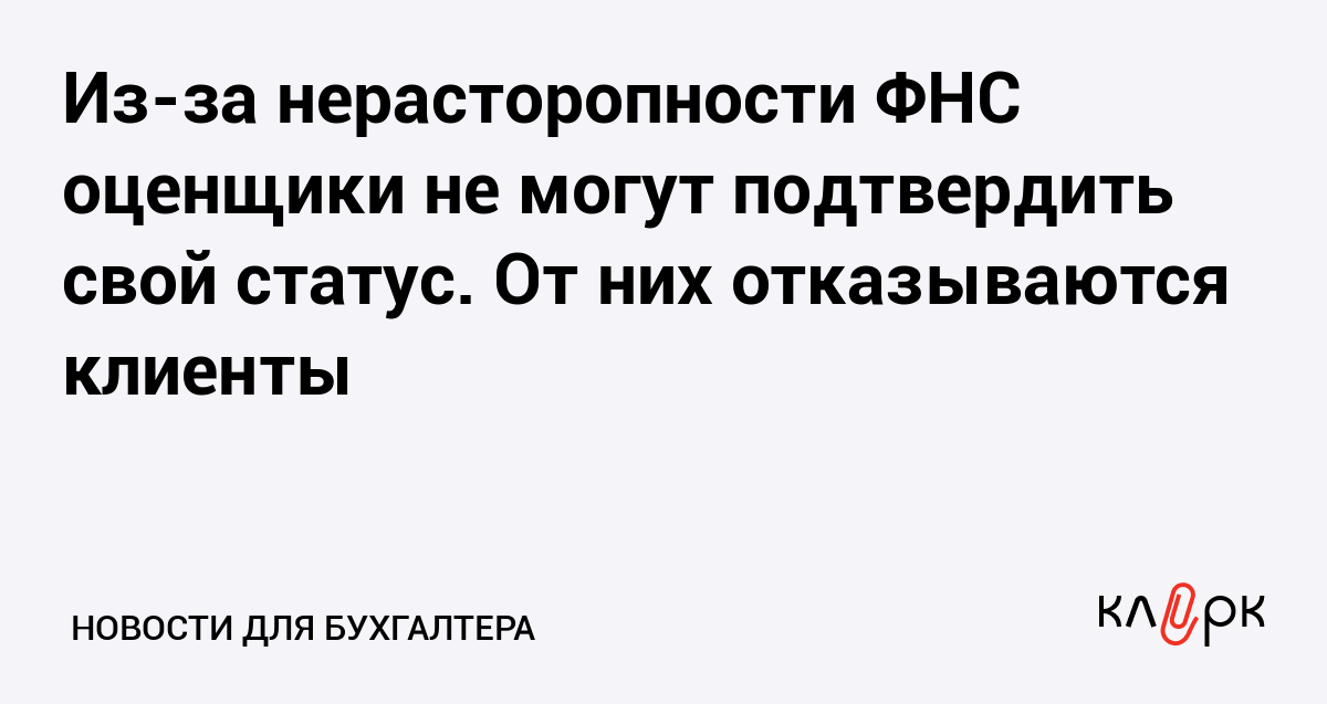 Из-за нерасторопности ФНС оценщики не могут подтвердить свой статус. От них отказываются клиенты