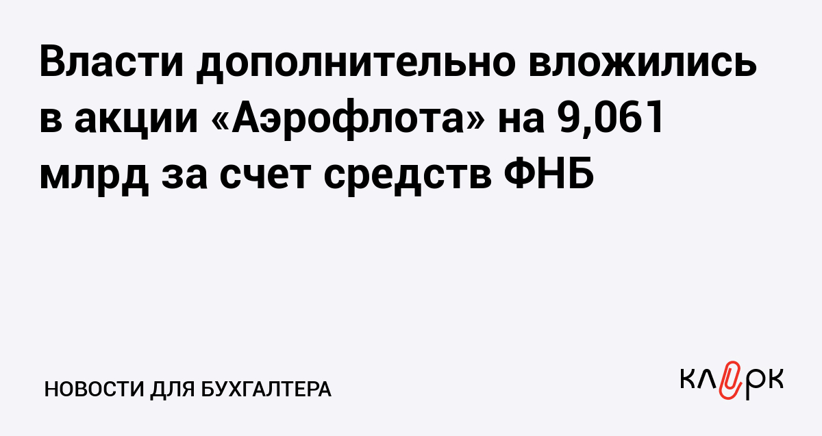 Власти дополнительно вложились в акции «Аэрофлота» на 9,061 млрд за счет средств ФНБ