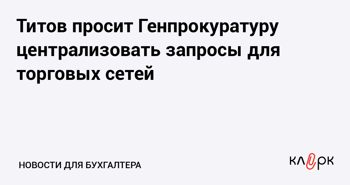 Титов просит Генпрокуратуру централизовать запросы для торговых сетей
