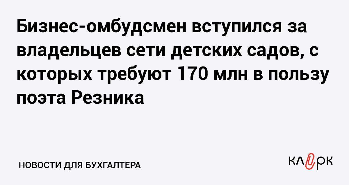 Бизнес-омбудсмен вступился за владельцев сети детских садов, с которых требуют 170 млн в пользу поэта Резника