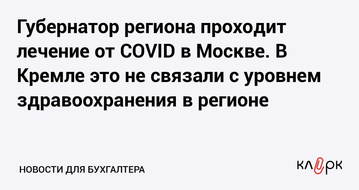 Губернатор региона проходит лечение от COVID в Москве. В Кремле это не связали с уровнем здравоохранения в регионе