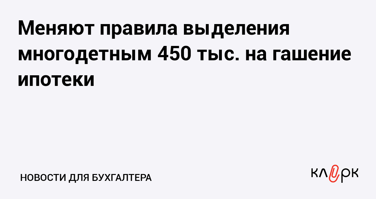 Меняют правила выделения многодетным 450 тыс. на гашение ипотеки