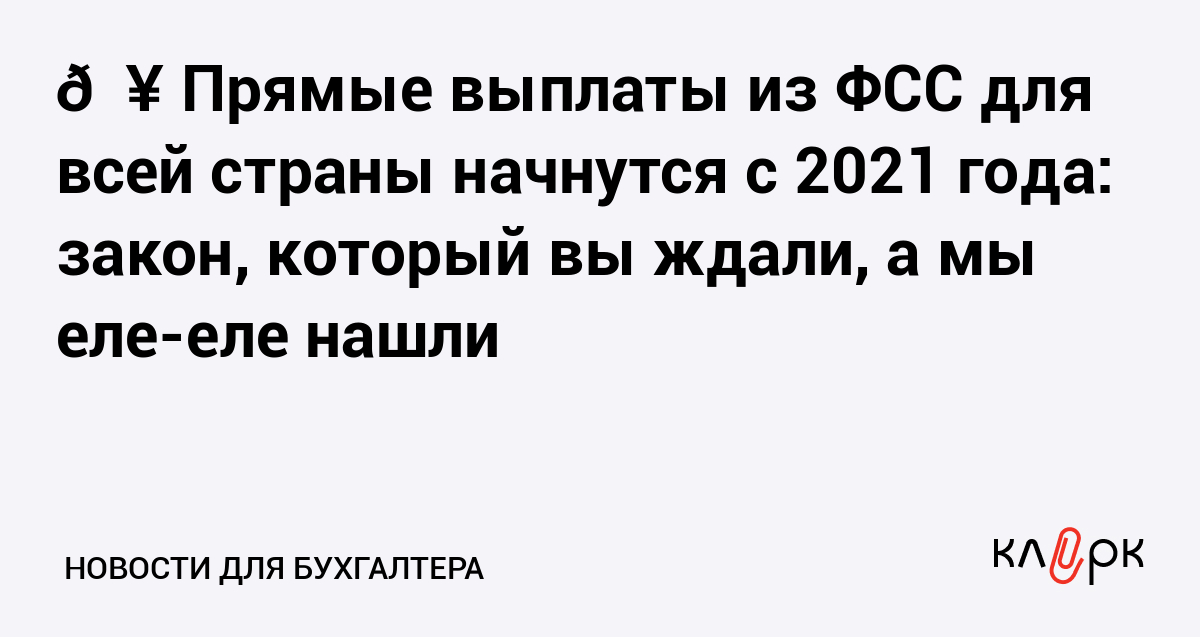 💥 Прямые выплаты из ФСС для всей страны начнутся с 2021 года: закон, который вы ждали, а мы еле-еле нашли